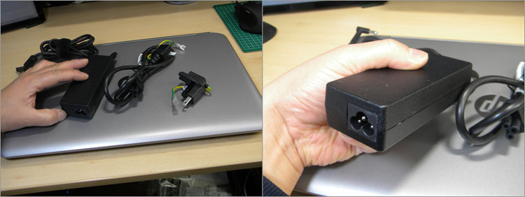 搭載するGPUによって異なりますが、GeForce GTX 850M搭載時は、90W-Cアダプタが付属します。ジョイントする電源ケーブルがやや太めですが、ウォールマウンタを使うことでケーブルを省略できます。