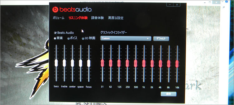 とあるゲームサウンドにて、高音域が耳障りだったので、BeatsAudioのユーティリティソフトで調整。