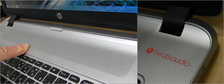 流線型のエッジ部分にはデュアルスピーカーを内蔵。ユーザーの正面に向いているので自然な出力方向です。また、HPでお馴染みのBeatsAudioテクノロジーによって独自のチューニングがされています。底面のサブウーファを合わせた2.1chサウンドとなっているため、ノートパソコンとしてはサウンドクオリティに秀でています。