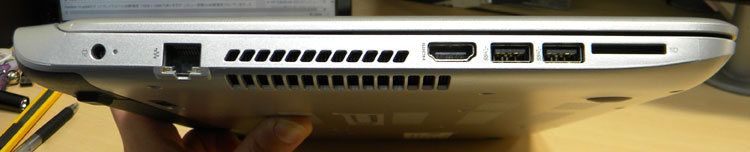 装備するインターフェースも前モデルと同じ。HDMI端子、USB2.0端子×1、USB3.0端子×2、SDカードスロット、100Base LAN端子などを装備。光学ドライブも搭載されています。