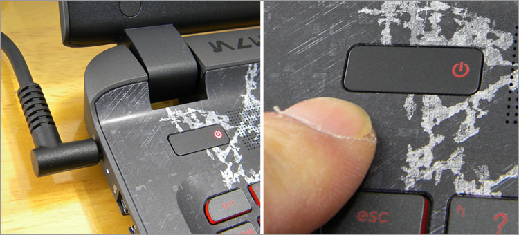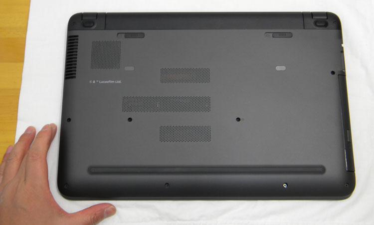 天板のプリントは、 激しい戦いを彷彿とさせるバトル・ダメージパターン。プリントに関して、「銀河を恐怖に陥れる、ダークサイドデザイン」がコンセプトらしい。HP Imprint(インプリント)の技術で印刷されており、プリント・クオリティは非常に良い。このようにグラデーションの多いデザインの場合、他社では網点が目立つ例が多々あるが、このStar Wars Special Editionはかなり自然である。