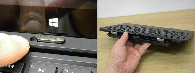 キーボードの上にあるラッチをスライドすると、キーボードを分離することができます。