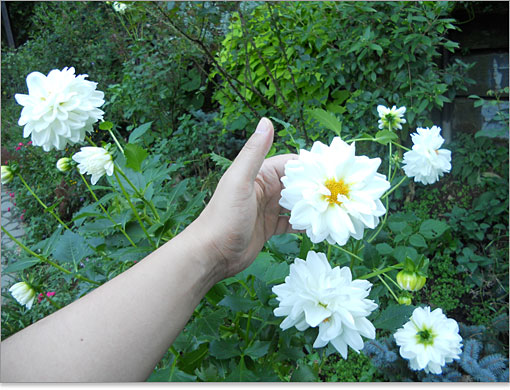 ローズハウス・ローズテラス。オールドローズガーデンという名の庭の中でツルバラに覆われた白い建物。バラをテーマにした商品販売と喫茶になっています。ハウスに入ったとたん、バラ臭・・・、マダムのティータイムを目にしました。う~む、苦手な雰囲気です。そろそろ、退屈になってきたところです。