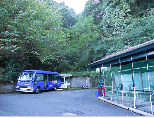 レストラン向かいには、テーマガーデンの入園券販売所があり、園内バスの停留場となっています。入園券を購入し、バス車内にて発車を待ちます。テーマガーデンへはバスに乗らなくても、行き来に苦労はありません。しかし周回するコースではなく、行って戻る形になるので、バスでスタート地点の奥地まで運んでもらいます。乗車時間は3分もなかったかな。