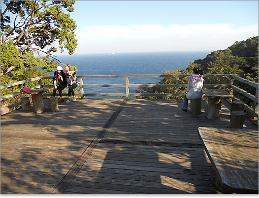 日本庭園の奥に展望台。