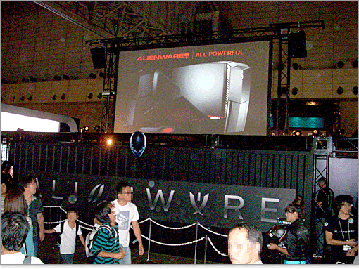 真っ先にDELLブースへ行きました。さっきからDELLブースと言っていますが、DELLのロゴは一切でていません。Alienwareブランドで一本化されています。会場案内にも「Alienware」と記載されていますし、ブース内の客もDELLだと思っていない人が多そうです。DELLの文字はカタログ等で見かける程度です。