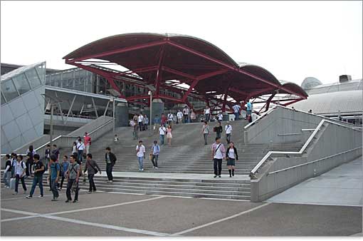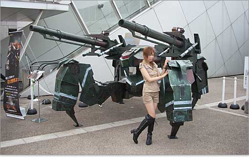 何やら階段の手前にメカ・オブジェがあり、時間が無いというのに立ち寄ってしまいました。たぶん、何かのゲームのメカなんでしょう。あまりかわいくないモデルのお姉さんが邪魔でしたが、サイズ比になるだろうと思い、そのままシャッターを切りました。