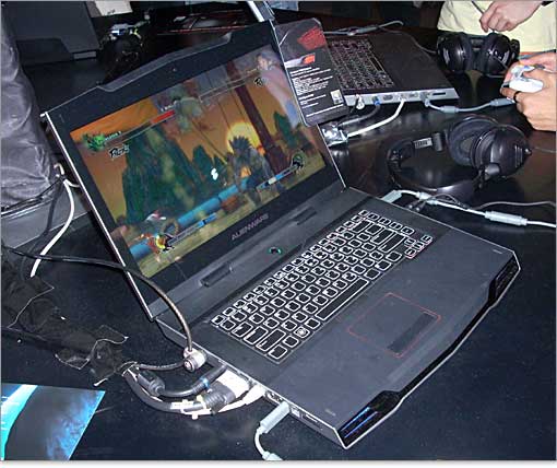 東京ゲームショウ2009で、Alienware M17xも展示されていましたが、会場では写真を撮影しませんでした。Alienware M17xは、2009年6月にDELLのAlienwareブランド第一号として先に登場しており、そのため搭載CPUはCore i7ではなく、一世代前のCore マイクロアーキテクチャ(Core 2 Duo、Core 2 QuadやCore 2 Extreme)を採用しています。(2009年9月時点。)