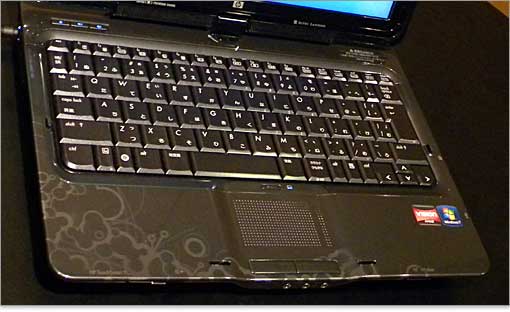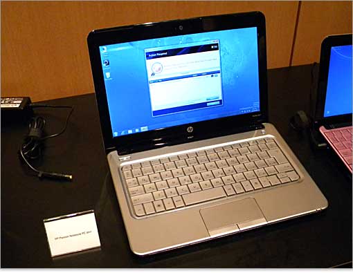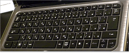 こちらは、11.6インチワイド液晶のdm1。液晶解像度は15インチクラスで一般的な1366×768。11.6インチなら高解像度仕様です。超省電力CPUのCeleron プロセッサー SU2300を搭載し、前頁で紹介したHP Mini 110(Atom N280搭載)と比べると約2.4倍の性能比とされています。Atomでは物足りないというミニノート・ユーザーに最適ですね。ミニノート同様、光学ドライブは搭載されていません。キーボードはフルサイズの92% ( 17.5 x 17.5 mm)で操作性良好。HDMI端子装備でデジタルコンテンツに活用できます。