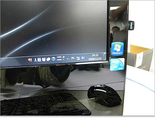 Inspiron One 19の前面を中心に解説します。画面は18.5インチワイド液晶。
