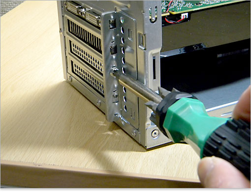 GeForce GTX 260はかなりでかいので、このような固定具まで付いています。取り外すには2つのネジを外します。