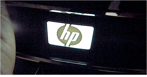 実は、HPイルミネーション・ロゴと呼ぶそうで、暗い場所では発光している様子が分かります。明るい場所ではほとんど気がつきません。