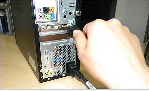 すでにお持ちの液晶モニタがアナログ端子のVGA(D-sub)しかないのなら、付属の変換プラグにてVGA端子に変換できます。