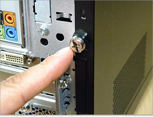 サイドパネルをロックしているネジは、ハンドスクリュータイプです。