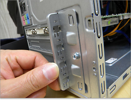 拡張カードの固定は、この金具1つでまとめてロックします。よってビス止めは1箇所。