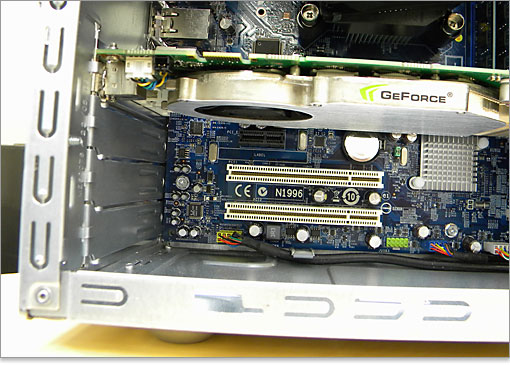 拡張スロットは、上からPCI Express x16 (グラフィックスカード用)が1基、PCIe x1が1 基、PCI を2基装備。PCI が2基あるところで、ビジネス向けに考慮された設計と分かります。