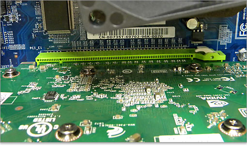 PCI Express x16 に搭載されたグラフィックカードの様子。