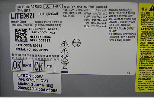 350Wの電源ユニットを搭載。ATX電源なので、保証対象外でよければ市販の電源と交換が可能です。DELLの法人モデルは非常に安いので、自作感覚で雛形PCして購入するのも面白いです。