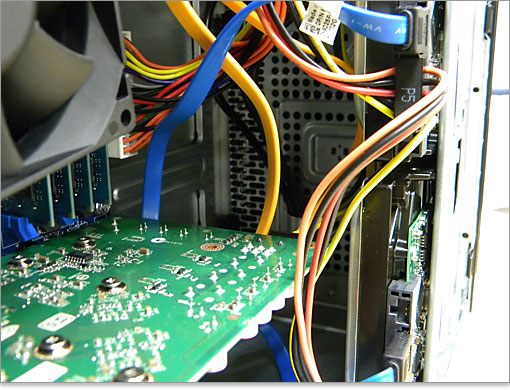 Vostro 430の内部をチェックしていきます。Vostro 430は比較的コンパクトなMicro ATX仕様のマザーボードを採用しています。