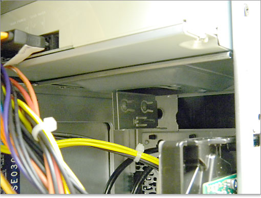 光学ドライブは2基まで搭載可能。1ドライブに対してビス止め2箇所で固定が可能です。反対側は溝にはまって固定される機構になっています。