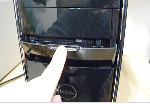 次は2段目の光学ドライブのイジェクトボタンを押す。2台目は搭載していないので、反応しません。