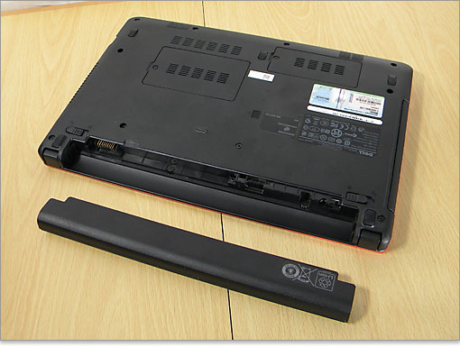 今回のは標準の4セルバッテリー。公称ではバッテリ駆動時間が最大5時間9分となっています。オプションで8セルバッテリーを搭載すれば、最大11時間23分も駆動するようです。さすが超省エネが売りのCULVノート!モバイルに強みをみせます。