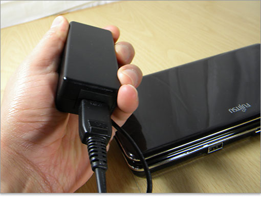 ACアダプタは非常にコンパクト。