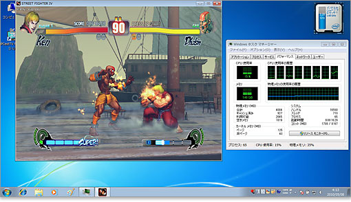 ストリートファイター4では4スレッド動作なので、8スレッドのCore i7では持て余すようです。それに使用率が10%満たないことが多く、CPUの性能はそれほど求められていません。ほとんどグラフィック機能が要です。