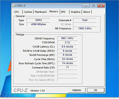 DDR3の2GB メモリを2枚同時挿ししており、デュアルチャンネルとして動作しています。