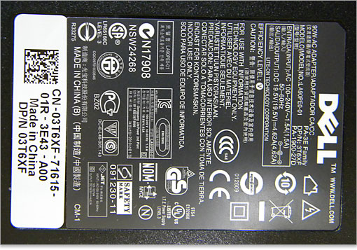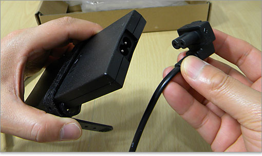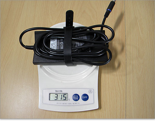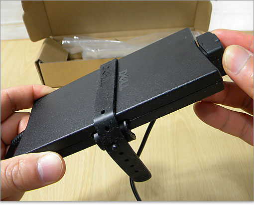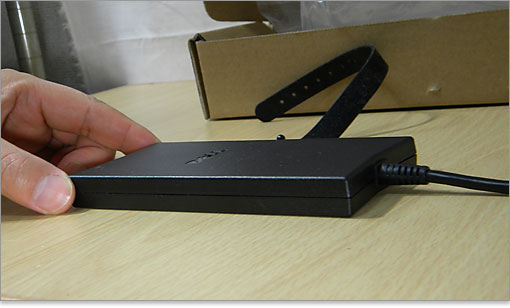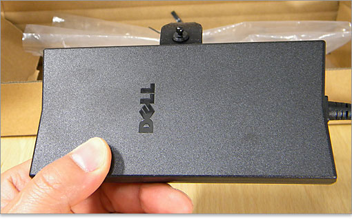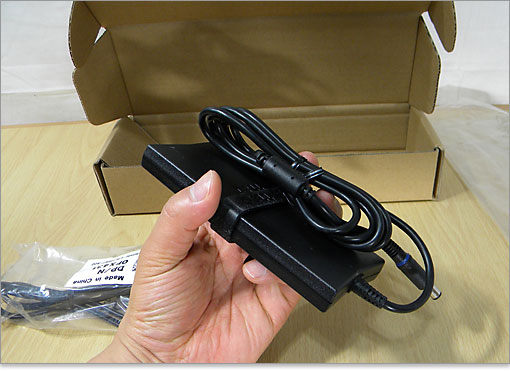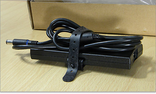 そしてこちらが、90WのACアダプタです。従来の90W製品と比べるとコンパクトになった気がします。