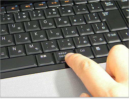 カタカナひらがなキーは通常のキーより大きめで、操作しやすい。