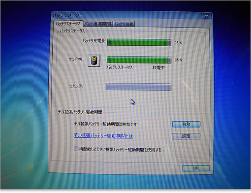 バッテリーメーターが起動。ステータスやバッテリー耐用時間、性能を確認できます。