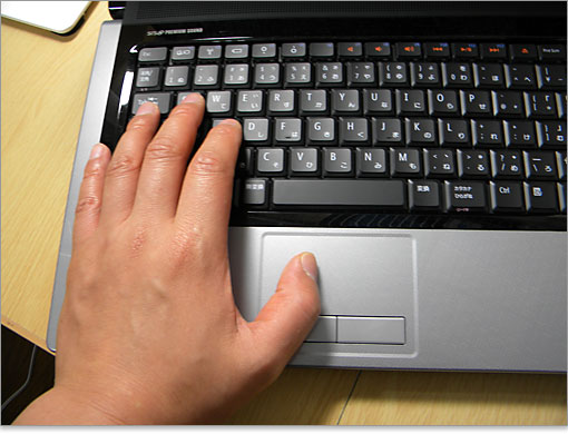パームレストに左手を置いた様子。