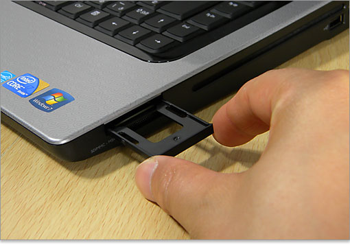 Express Card スロットを使わないときは、防塵用にダミーカードを差し込んで塞いでおきます。
