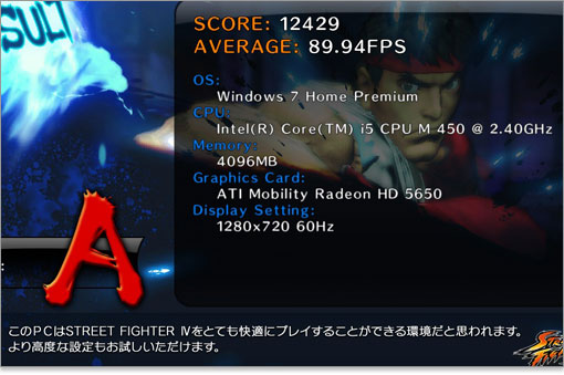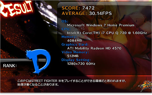 ATI Mobility Radeon HD 5430 1GBでは、ストリートファイター4は満足に遊べません。