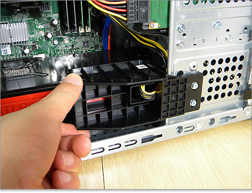 グラフィックカードの干渉をさけるため、マウンタでHDDが上に持ち上げられています。