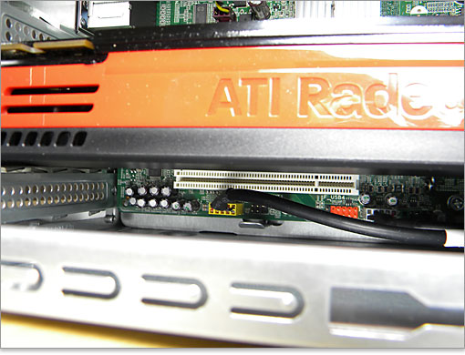 ただし、ATI Radeon HD 5870は厚みがあるため、2スロット分を占拠してしまいます。
