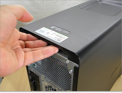 背面の一番上には、リフトポイント。持ち運びがしやすいように窪みがあります。下位のInspiron 580や580sではこういった機構は見られません。