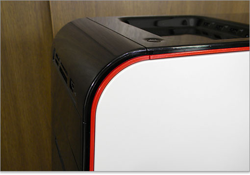 フロントパネルがそのままカーブを描いて、天井面へとつながったデザインです。そのカーブに沿った赤ラインがアクセントになっています。