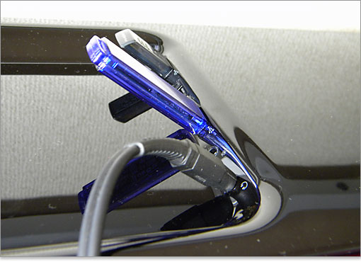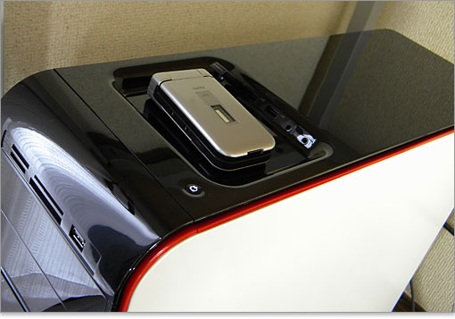 USB経由で充電できる機器を置くことができます。すぐ側にUSB端子があるので、手短に充電できます。
