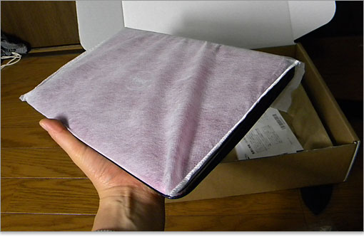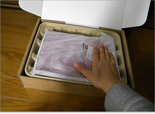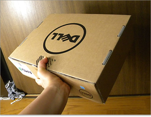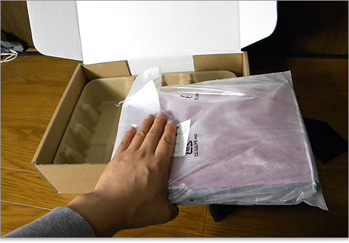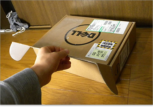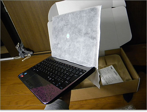展示会でのレビューでは、Inspiron M101zのクリア・ブラックモデルでしたが、2010年12月時点で、ピーコック・ブルー、ロータス・ピンク、 トマト・レッドがラインナップされています。 次はロータス・ピンクのモデルを紹介します。まずは開梱風景から。