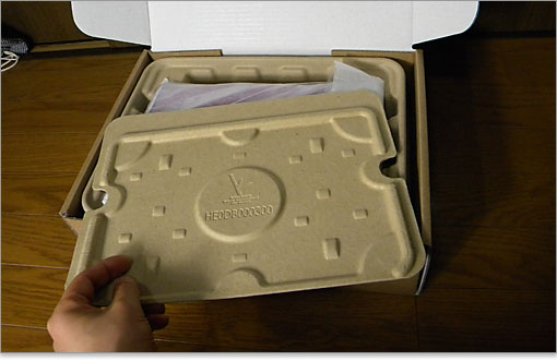 緩衝材はパルプ素材。いつもフタがついていますね。