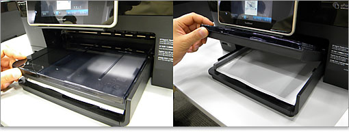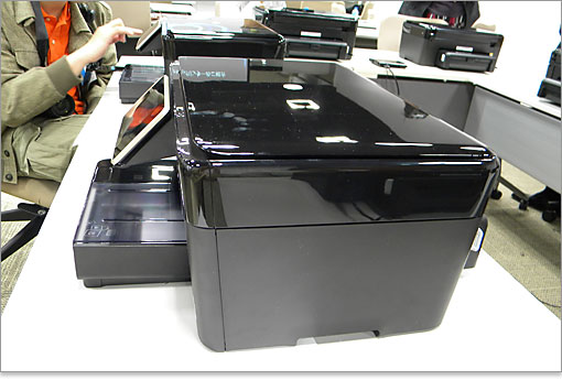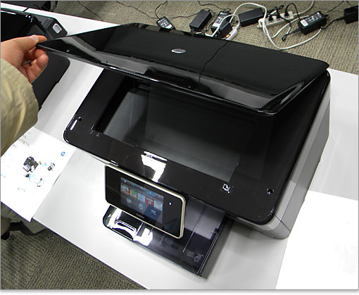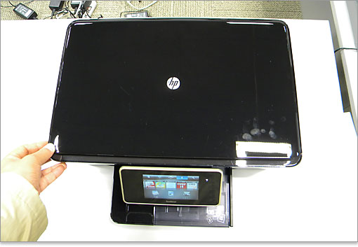 新機能のメールdeプリント(ePrint)とアプリdeアプリ(Print Apps)を搭載するPhotosmart Premium C310cを見ていきます。デザインとしては、タッチパネルが突き出しているところに、ややバランスの悪さを感じます。