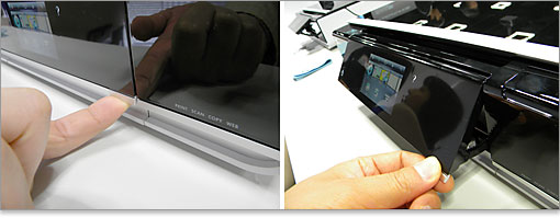 パネル画面は右側のツマミを持ち上げて、角度をつけることができます。