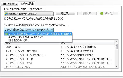 NVIDIA Optimusテクノロジーでは、自動選択および、優先するグラフィックを設定できます。