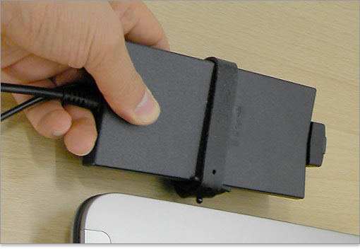 ラバー製の結束バンド付。余ったケーブルをACアダプタと一緒にひとまとめできます。
