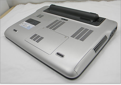 9セルバッテリー装着時では、バッテリーが底面から突き出すようになります。