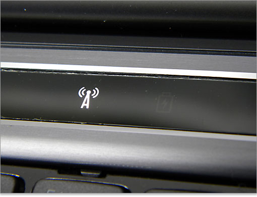 電源ボタンの右隣には、「Caps Lock、ワイヤレス、バッテリー」のステータス(状態)を示すライト。Caps Lockとワイヤレスではオンの状態で点灯。バッテリーでは充電中に白色で点灯。満充電で消灯。バッテリ残量低下(10%以下)で橙色に点灯します。