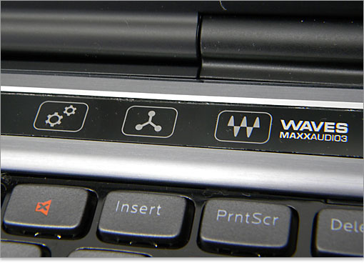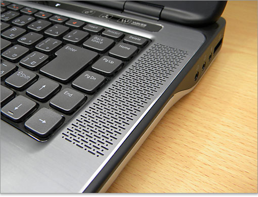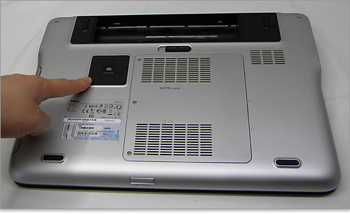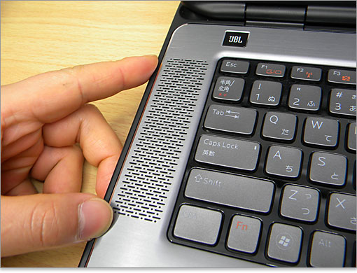 XPS 15(L502X)のセールスポイントといえば、前モデルから引き継いでいるサウンド環境です。キーボード左右にJBLスピーカーが配置されており、底面のサブウーファと合わせた2.1chサウンド構成です。