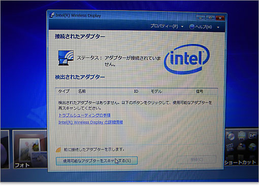 また、インテルWireless Display(WiDi)がインストールされていました。外部モニタへワイヤレス出力できるというものですが、今回は別途必要なアダプタがなく、検証できませんでした。PC同士のネットワークを構築することなく、離れた場所のモニタに表示できるなんて便利な世の中となったものです。